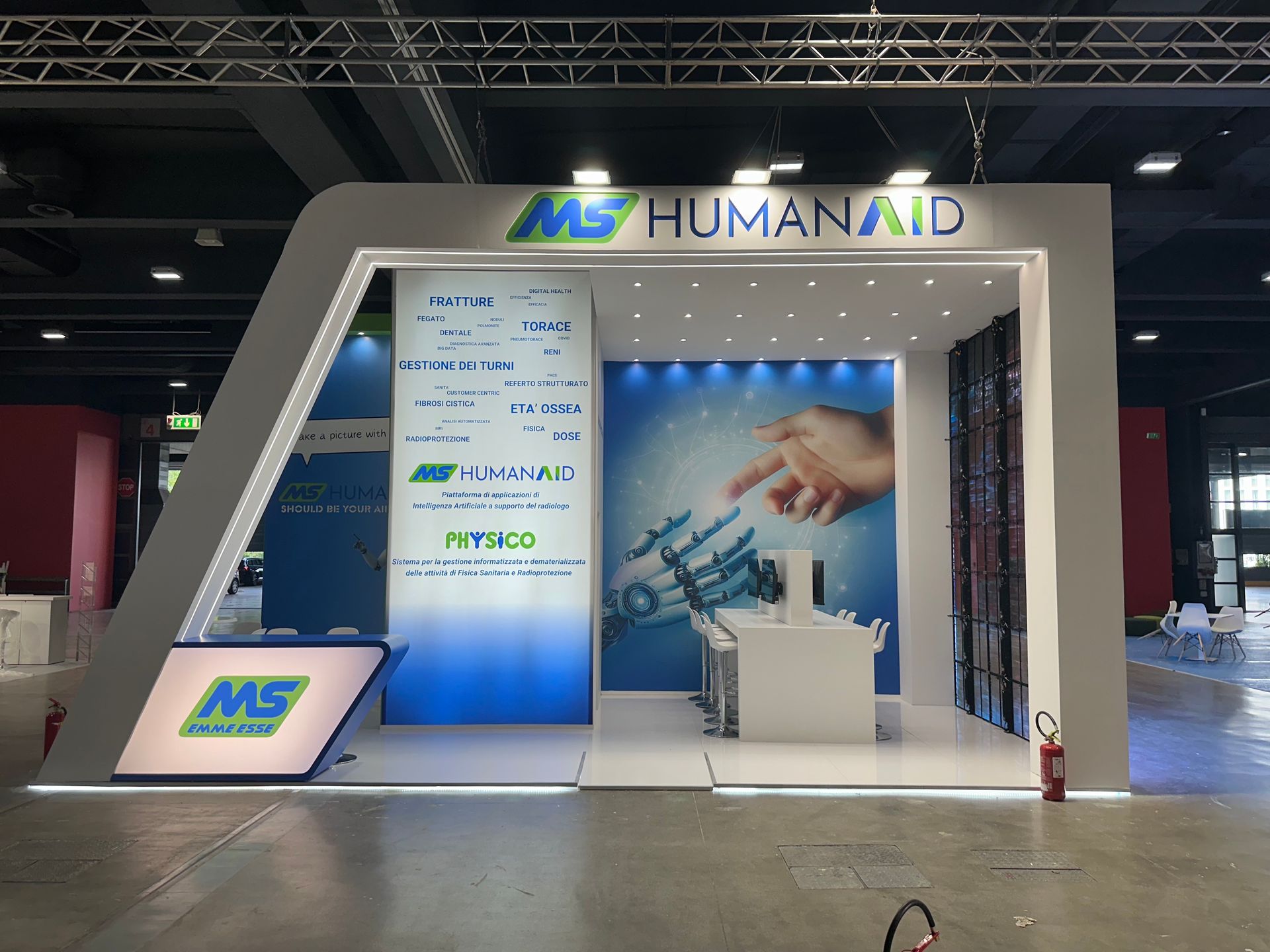Lo stand, interamente dedicato ad un sistema di AI, ha come focus un ledwall trasparente alto 4m che proietta video con effetto 3d.
