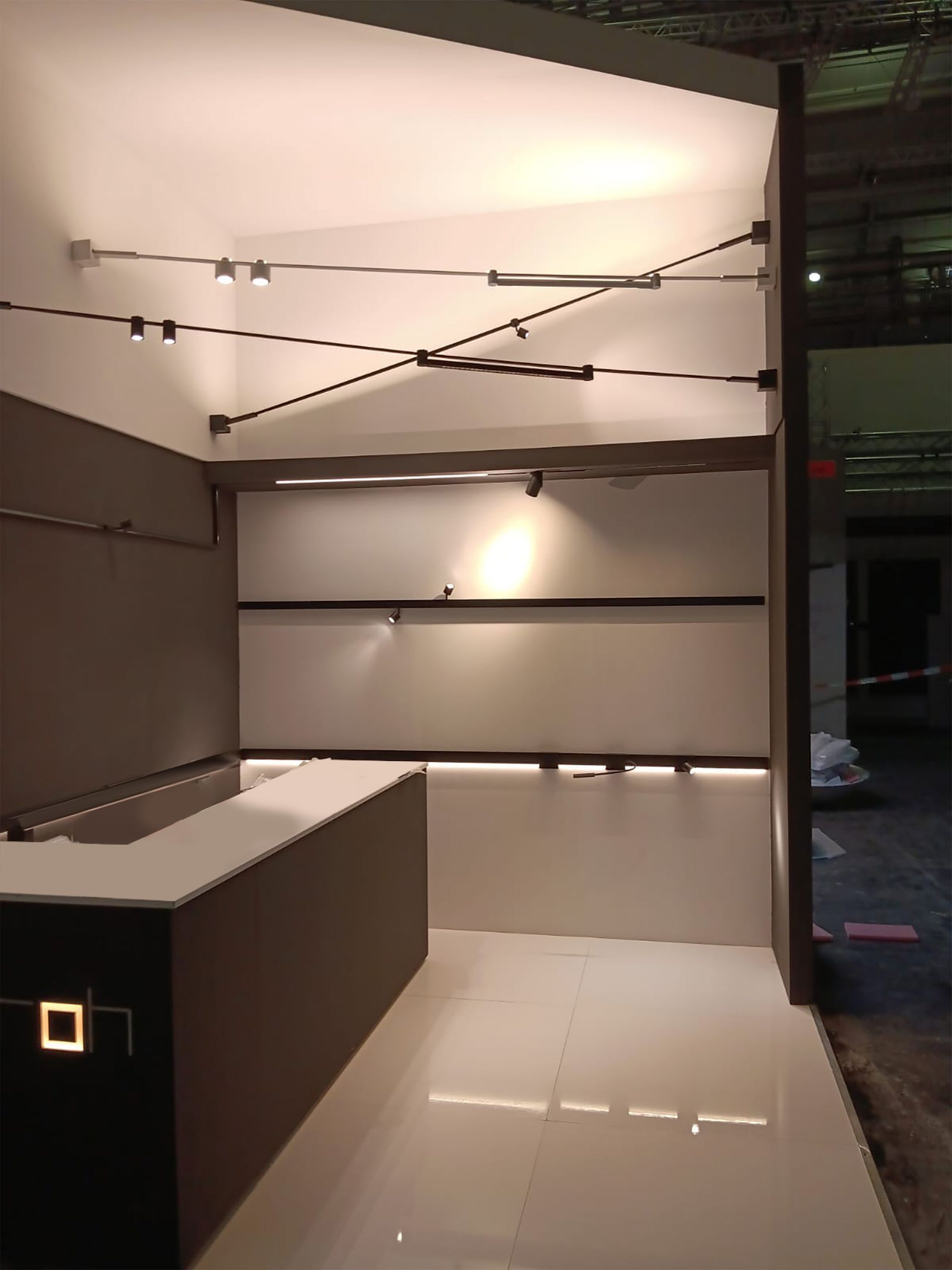 Un piccolo stand elegante, sviluppato in ogni angolo per creare diverse atmosfere con il solo utilizzo della luce.