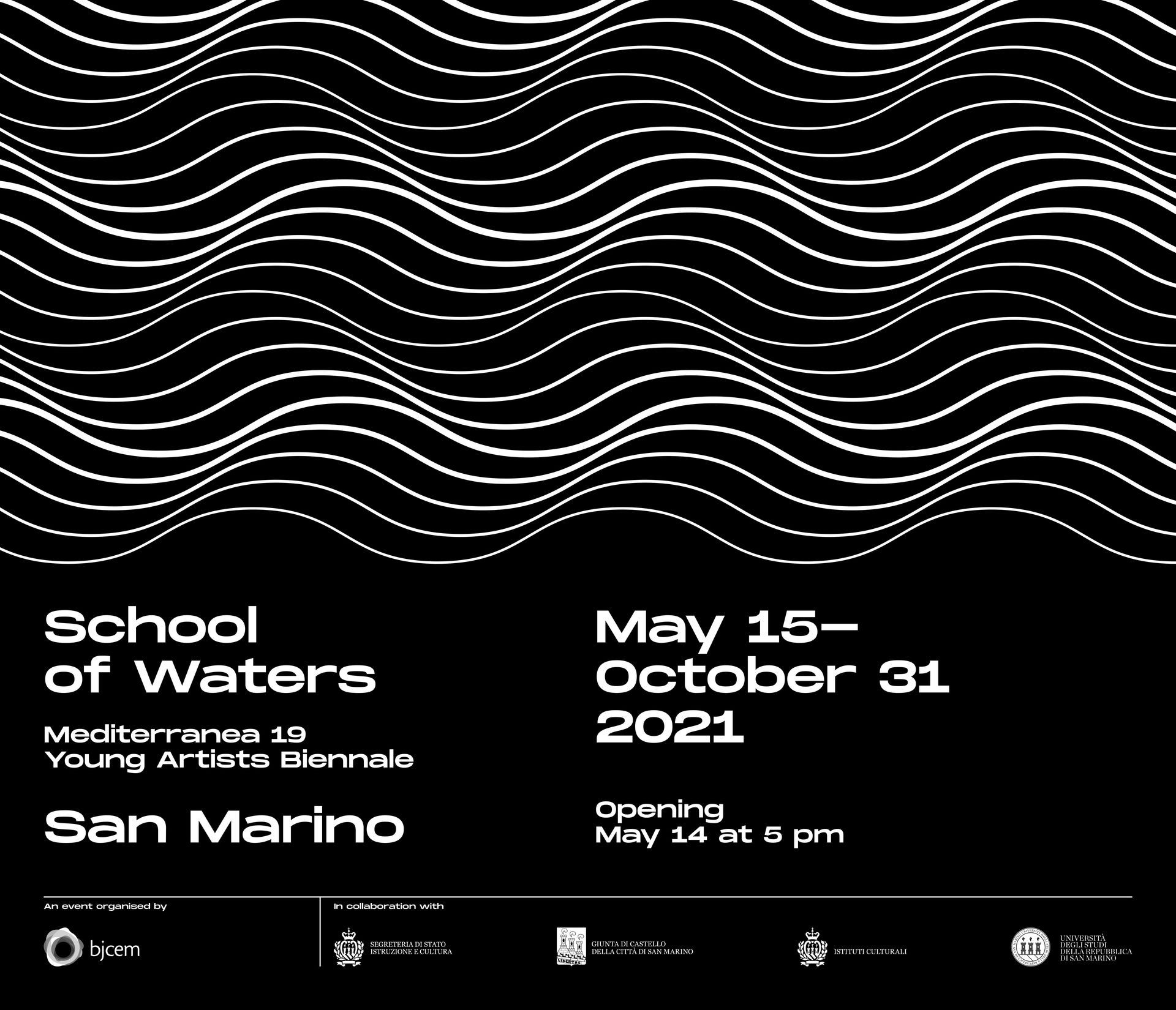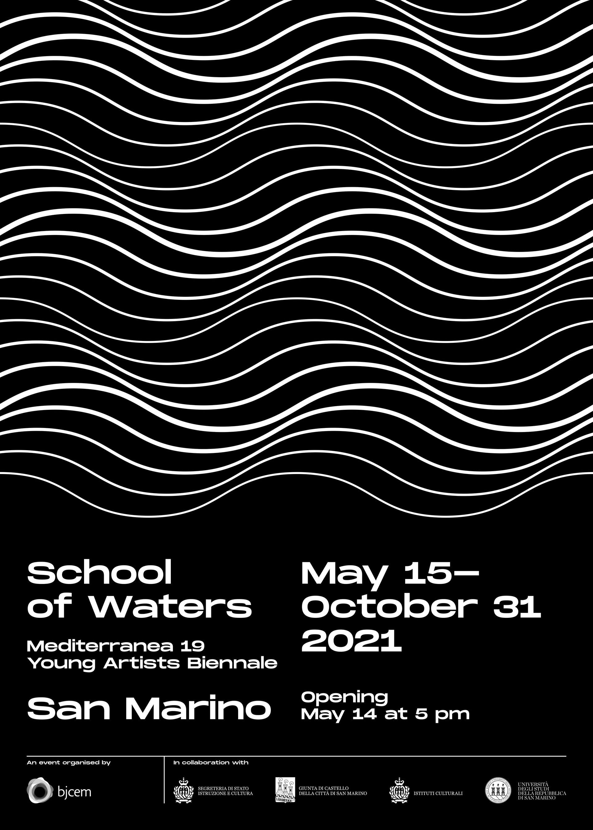 San Marino e BJCEM per la realizzazione dell' identità visiva della mostra biennale MEDITERRANEA 19 che in questa edizione ospita le opere di artisti provenienti dal bacino del Mediterraneo sul tema School of Water, nelle prestigiose location della repubblica più antica del mondo.