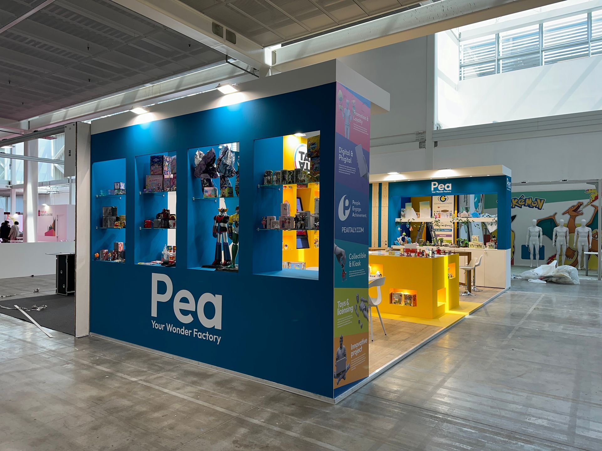 Partendo da uno schizzo di base, abbiamo creato delle aree espositive appositamente studiate sui prodotti, dato le giuste proporzioni alle strutture e definito un progetto di luce: luce puntuale per l'esposizione e luce diffusa per le aree meeting. Infine una comunicazione studiata su più livelli e spessori per arrivare su ogni punto di vista.