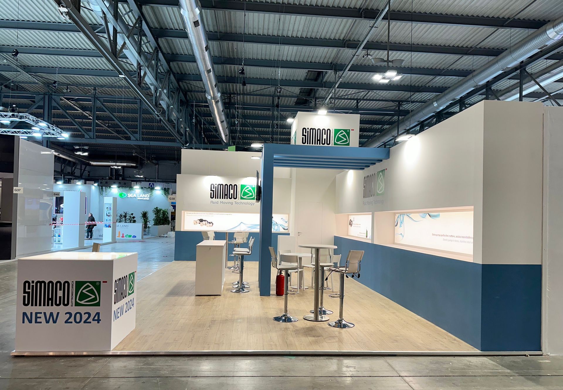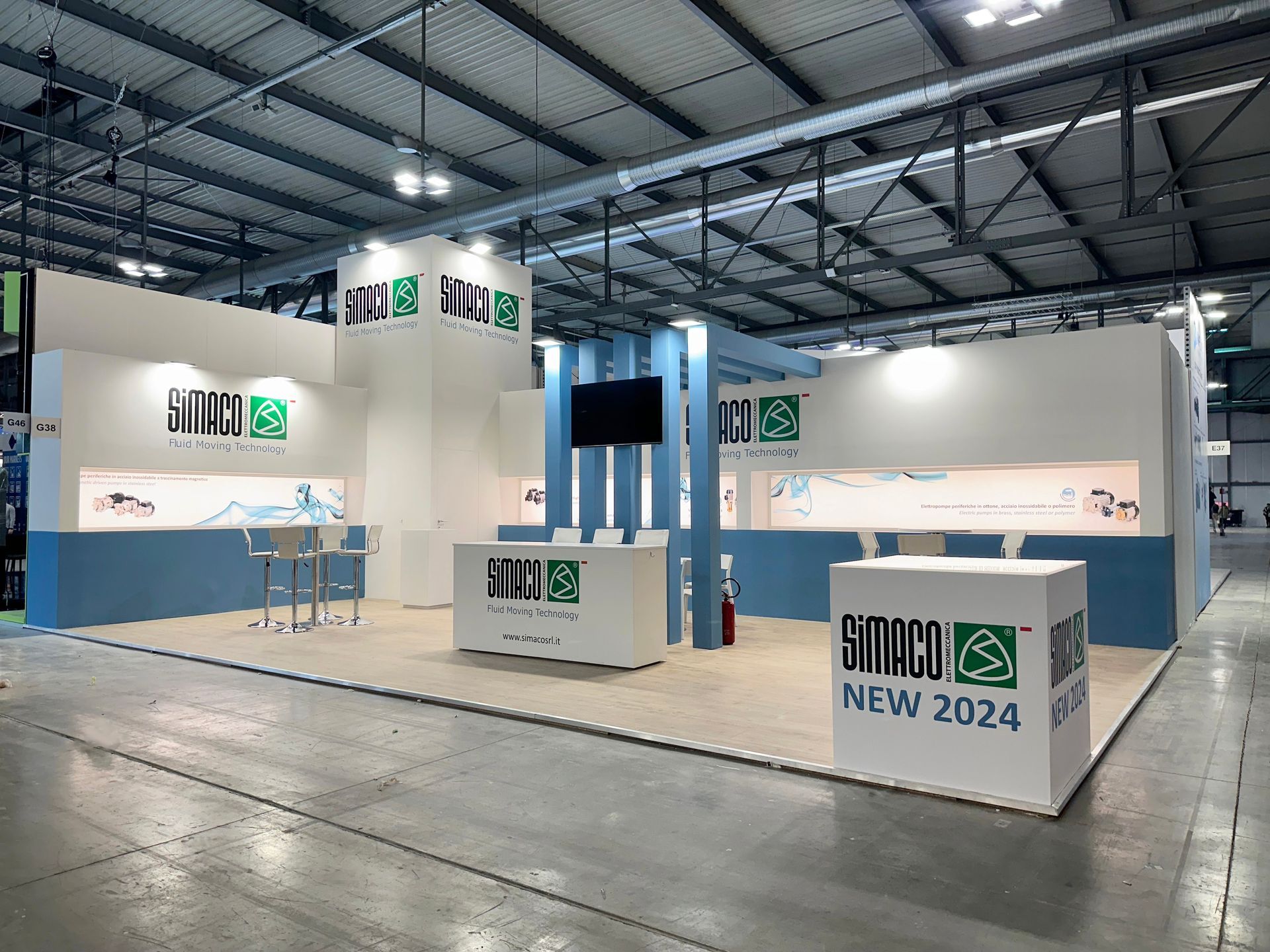 Qui Avntgard firma progetto e realizzazione dello stand Simaco, azienda leader nelle tecnologie di movimentazione fluidi.